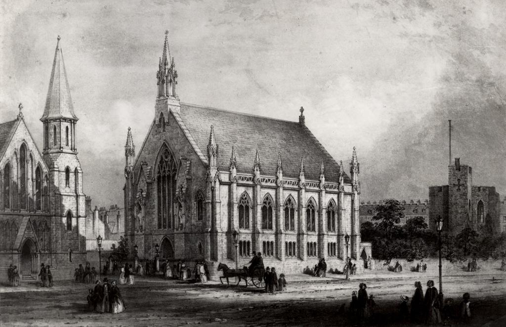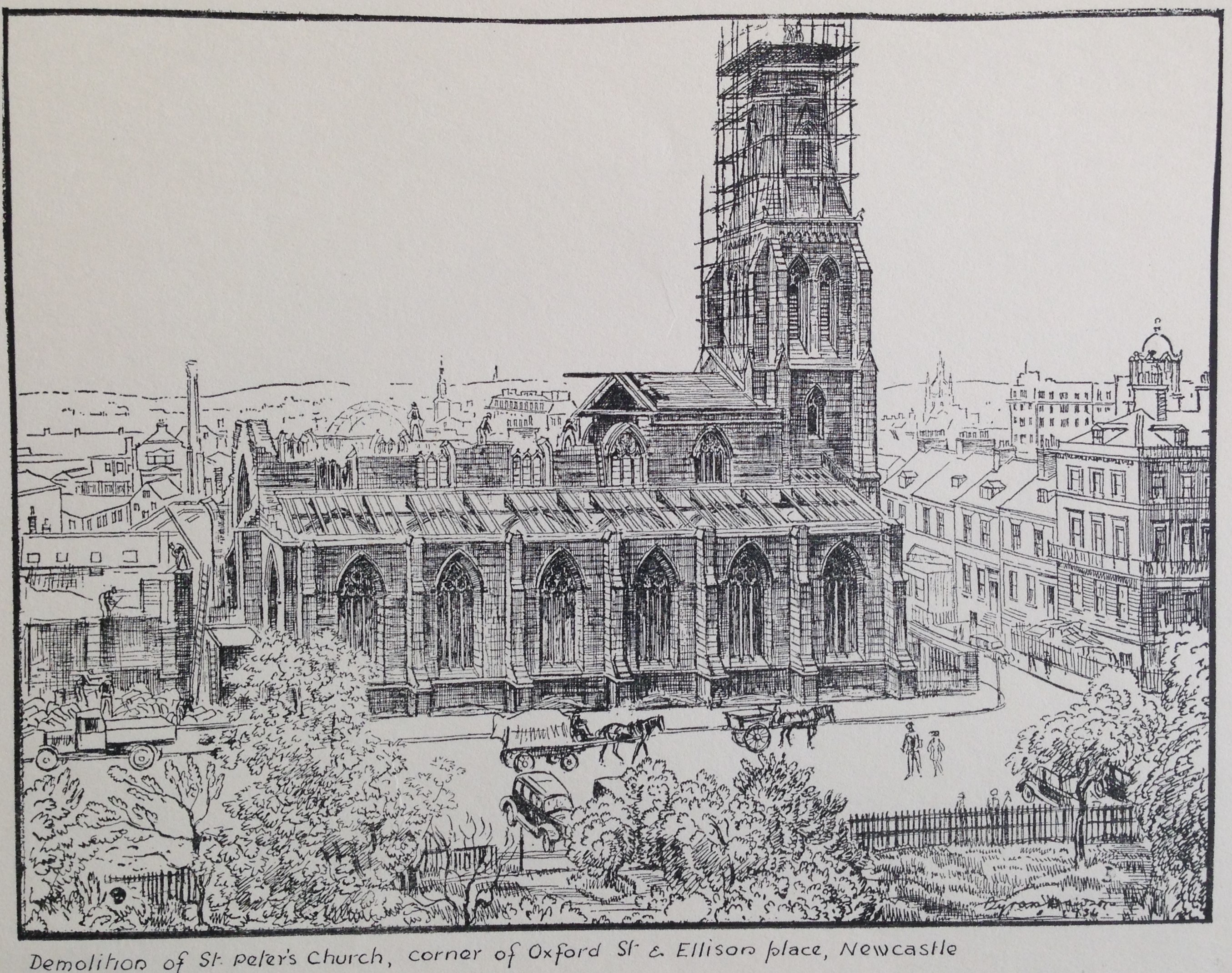 One of Herbert Barnes’s challenges during his ministry was the dangerous state of repair of John Dobson’s church. The cost of repairs eventually became prohibitive and after serious subsidence was discovered, it was decided to build a new church in its place. A public building appeal fund was set up in 1938. The last service in the old church was on Sunday 26 March 1939 and the first in the new one in nearby Ellison Place, on the site of another demolished John Dobson church, St Peter’s, was on Sunday 21 January 1940.
