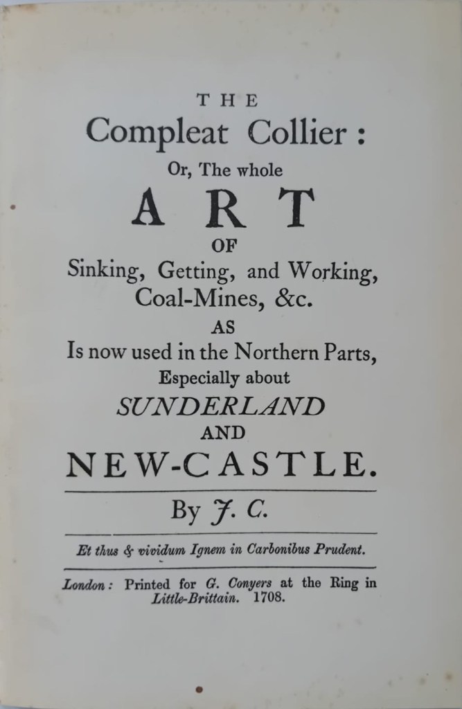 ‘The Compleat Collier: or The whole Art of Sinking, Getting, and Working, Coal Mines, &c., As Is now used in the Northern Parts Especially round Sunderland and New-castle’ by JC;1708. Reprinted by Frank Graham, 1968