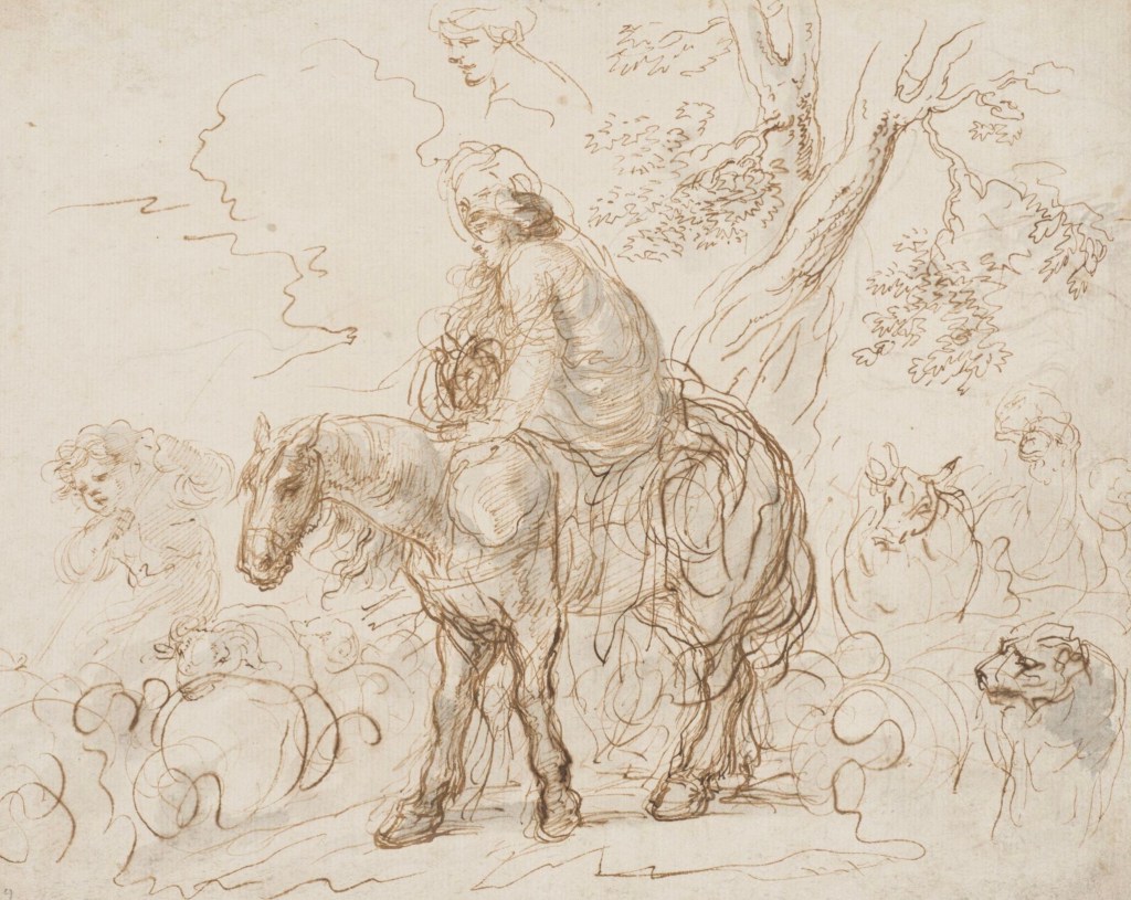 (Top – ‘A woman riding side-saddle on horseback, accompanied by a boy with a staff and by sheep, coes and a camel’ drawing by Stefano della Bella (1610-1664), Victoria and Albert Museum; Centre – ‘Women Working in Wheat Field’ sketch / study by Vincent Van Gogh (1853-1890), Van Gogh Museum, Amsterdam; Bottom – ‘Women on the Coxlodge Waggonway’ (Chris Jackson, 2024).
